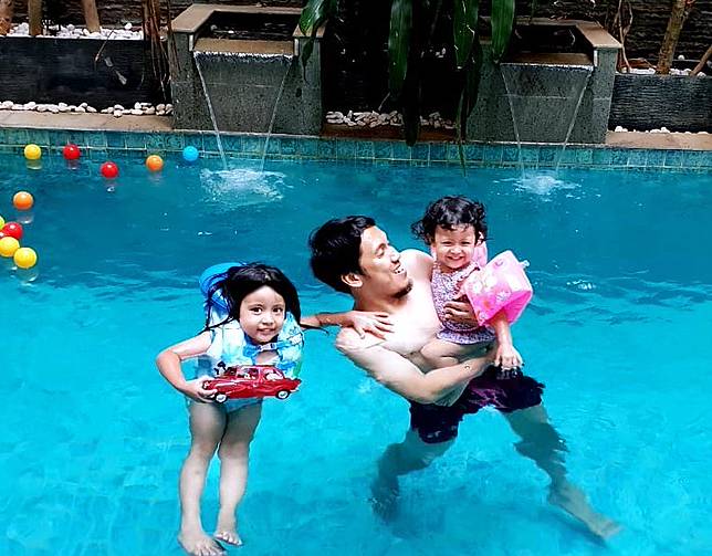 Termasuk dalam urusan berenang seperti ini, Desta harus siap mendampingi dua anaknya sekaligus. Mengingat sang istri, Natasha Rizki kini tengah hamil anak ketiga mereka.