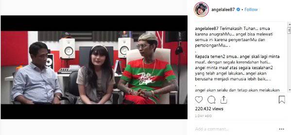 Tiga bulan setelah mendekam di penjara, tepatnya pada Mei lalu, akun Instagram Angela mengunggah sebuah surat yang dituliskan oleh wanita asal Semarang itu. Dalam tulisannya, Angela meminta maaf atas kesalahannya.