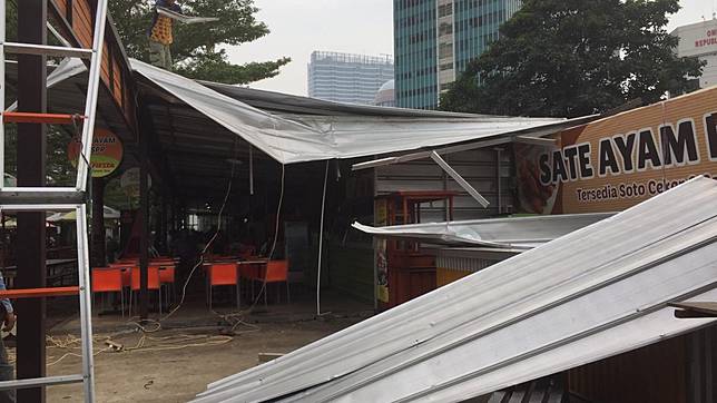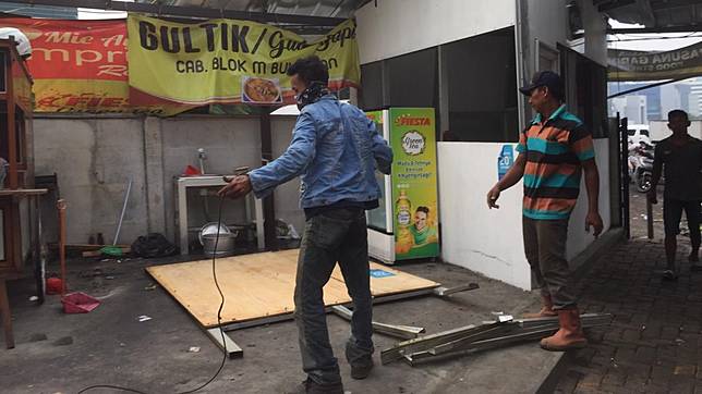 Pantauan kumparan di lokasi, empat kios tersebut adalah tempat makan sop buntut Ibu Samino, sate ayam RS PP, mie ayam Simpruk Rel, dan Gultik cabang Blok M Bulungan. Keempatnya terpantau mengalami kerusakan di bagian atap.