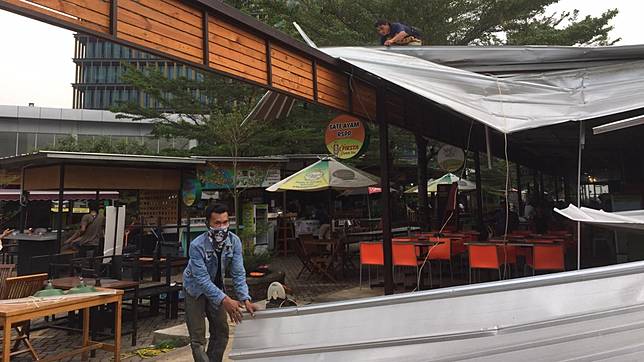 BANDARQ TERBAIK - Foto: Kios di Food Court Epicentrum Rusak Usai Dihempas Angin Kencang